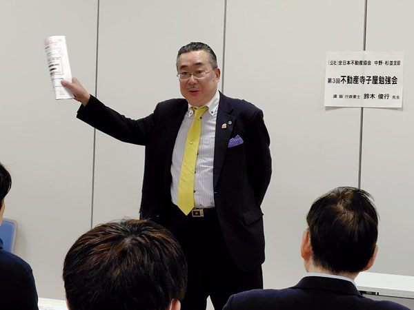 今年度3回目の開催、流通推進事業「不動産寺子屋勉強会」及びTRA厚生「懇親会」を開催致しました。流通推進委員長の堀田直宏氏の司会で始まり、井上正人支部長よりご挨拶の後に鈴木先生による勉強会に入りました。